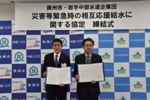 令和8年4月20日、奥州市と「災害等緊急時の相互応援給水に関する協定」を締結しました。