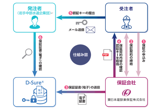 D-Sureは、電子保証を集中管理し、発注者が閲覧できる仕組みをインターネット上で提供するクラウドサービスです。